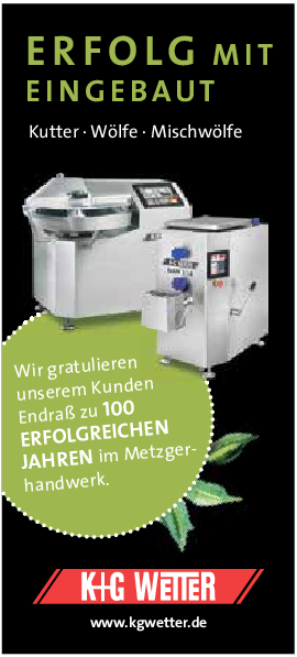 Und an diesem Wert sollen Kunden genauso viel Freude haben, wie der Hersteller, erklärt Matthias Endraß. Rindfleisch und Wild bezieht die Metzgerei aus der unmittelbaren Umgebung, Geflügel und Schwein stammt von Lieferanten, die Endraß' Vorstellungen an Haltung und Qualität teilen. Im Bad Oberdorfer Ladengeschäft werden täglich frische Schinken-, Fleisch- und Wurstwaren aus eigener Herstellung und Schlachtung angeboten. Spezialitäten wie die Endrass-Wildlandjäger haben in der Region bereits ihren Ruf. Für schmackhafte Veranstaltungen stehen die Fleischprofis ihren Kunden außerdem mit einem Cateringservice zur Seite. Von der Grillparty bis zum 12-Gänge-Menü nehmen sie sich gerne neuen Herausforderungen an.