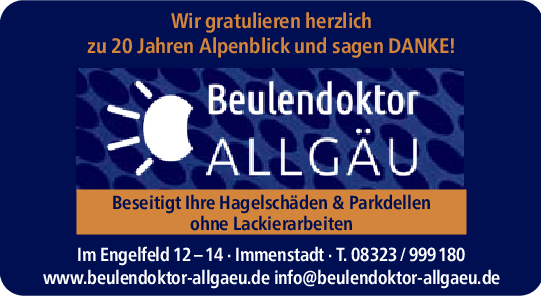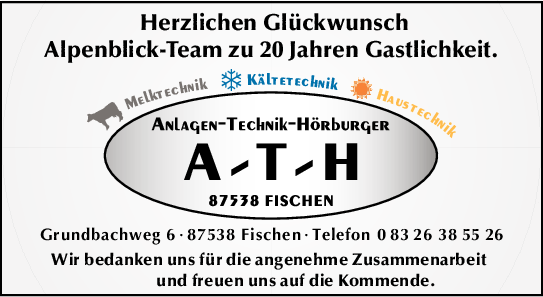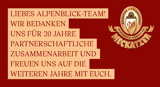 Ein besonderer Dank gilt allen Geschäftspartnern und Kunden des Berggasthof Alpenblick, ohne die das 20-jährige Bestehen nicht denkbar wäre. Die Familie Spannbauer freut sich, auch in Zukunft einen Ort für gesellige Stunden bieten zu können.