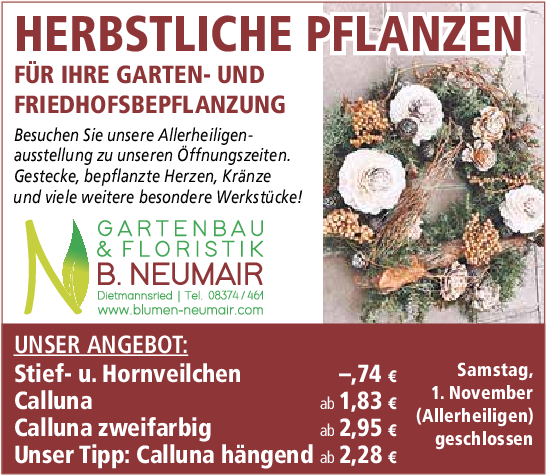 Oktober/November – der Herbst geht langsam in den Winter über, es beginnt eine besinnliche Zeit, in der man gerne an diejenigen denkt, die man liebt. Dabei kreisen die Gedanken nicht nur um jene, die einen umgeben, es ist auch eine Zeit, in der die Erinnerung besonders gelebt wird. So sind der 1. & 2. November, Allerheiligen und Allerseelen, Gedenktage der Katholiken.
