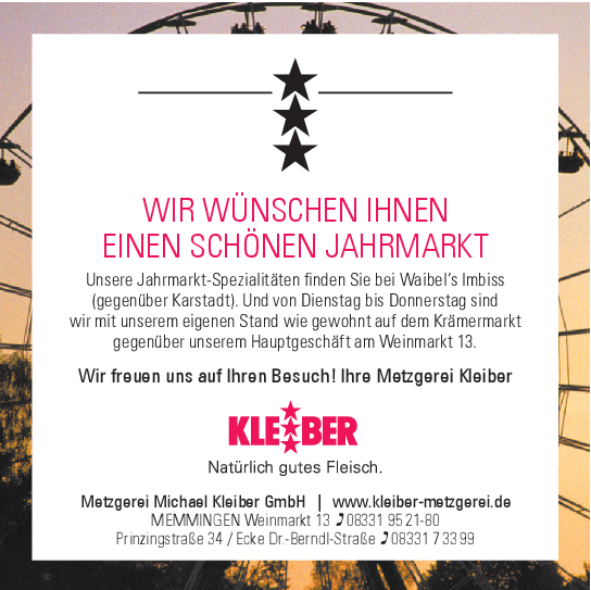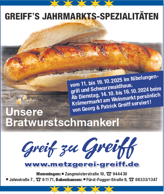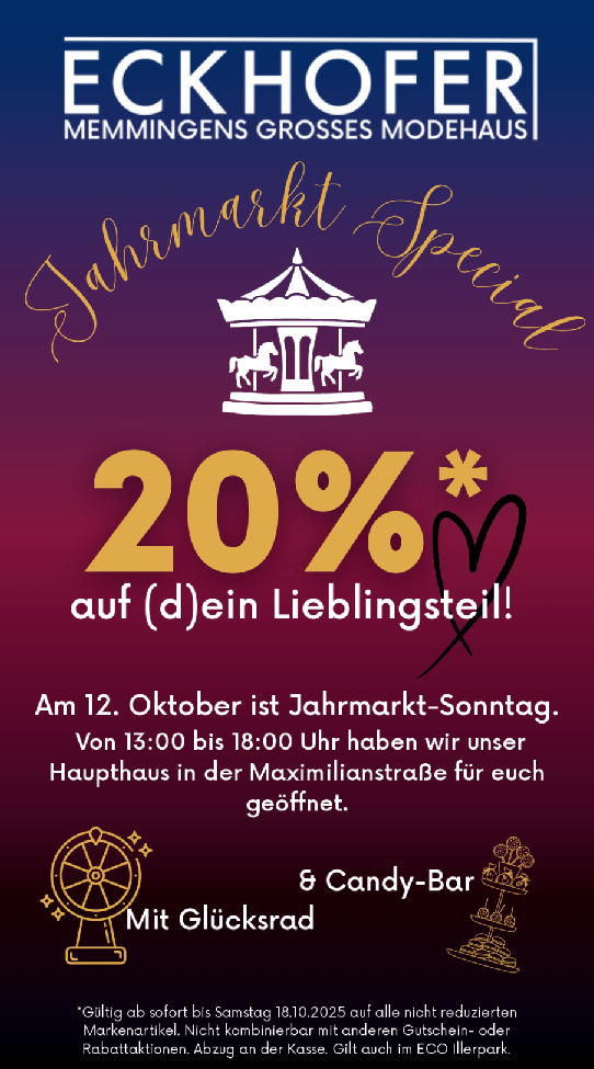 Der Memminger Jahrmarkt wird am Samstag, dem 11. Oktober, um 11 Uhr traditionell auf dem Westertorplatz durch den Oberbürgermeister, Herrn Jan Rothenbacher, und den Marktreferenten, Herrn Rolf Spitz, eröffnet.
